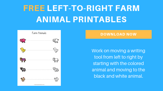 These farm left to right printables help toddlers and preschoolers work on learning how to move a writing tool from left to right.